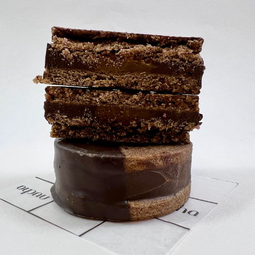 Tapas de suave chocolate rellenas de dulce de leche, y bañado a la mitad con una capa sedosa de chocolate negro con notas de licor. ¡Perfecto para los verdaderos amantes del chocolate!
