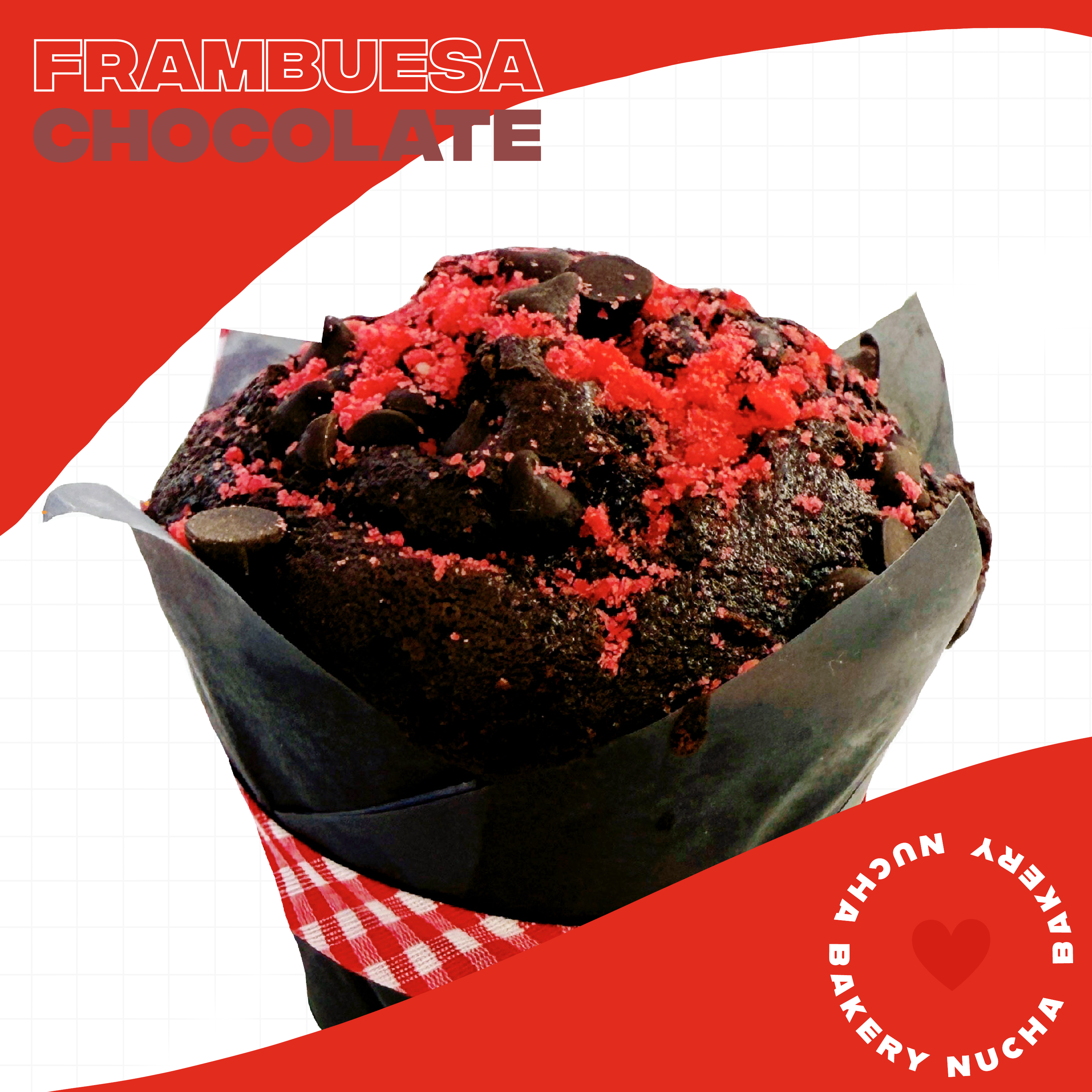 Un muffin de chocolate rico y húmedo, con un toque ácido y refrescante de frambuesas en su interior. ¡La combinación perfecta entre lo dulce y lo frutal!